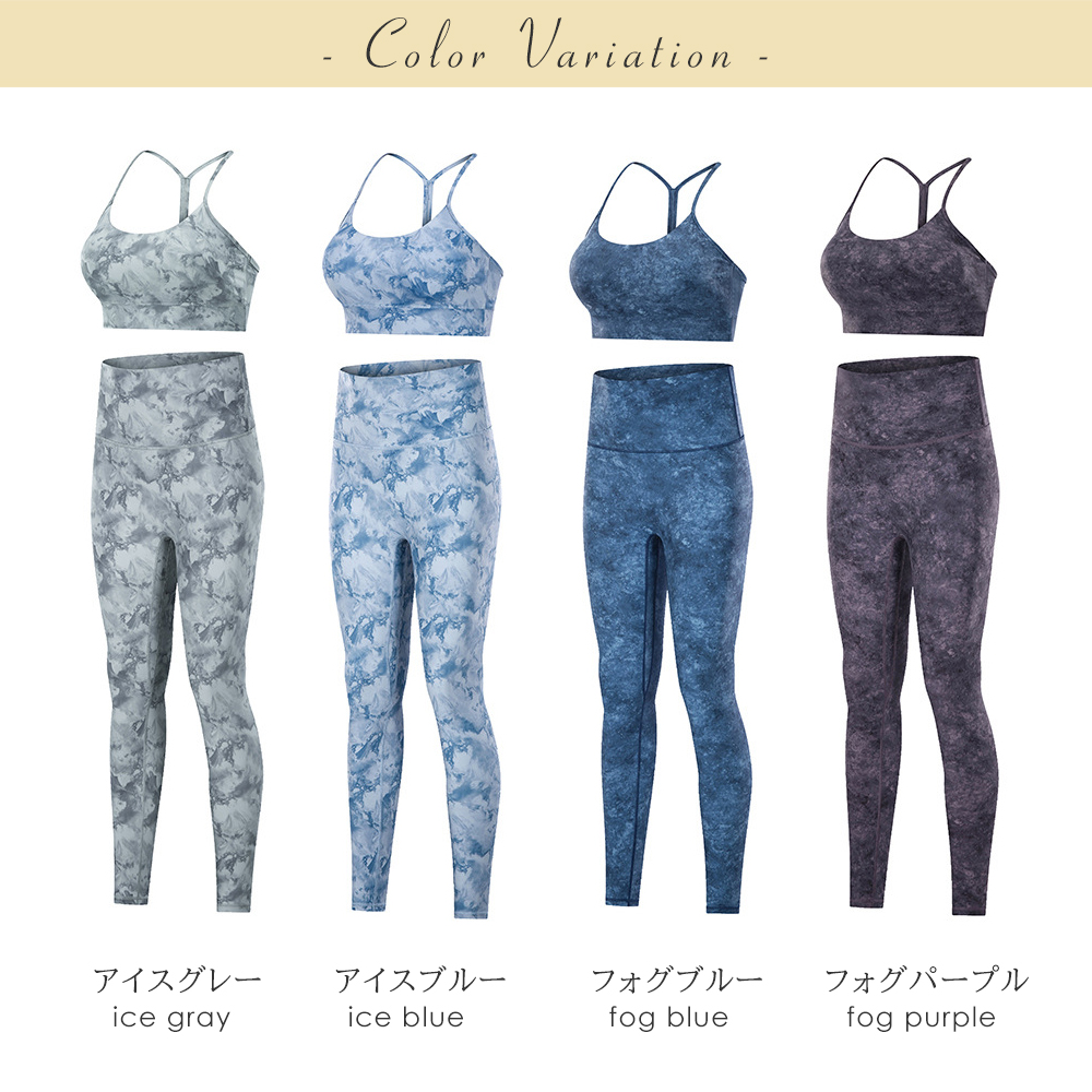 同じ柄のブラトップとレギンスのセットは